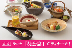 2025年10月2日 / 最終更新日 : 2025年10月2日 ホテルグランヒルズ静岡 花凜 季節のおすすめ 花凜NEWS 花凜おすすめ 花凜ディナー 【お日にち限定】〈ディナー〉ランチで人気の「葵会席」がディナーで楽しめます! 花凜で人気のランチ『葵会席』(5,500円)が お日にち限定でディナータイムにお楽しみいただけます。