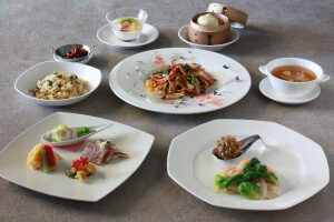 富翠珠人気の「海老のチリソース煮」や「北京ダック」などを贅沢に組み込んだ土日祝限定のプレミアムランチ。